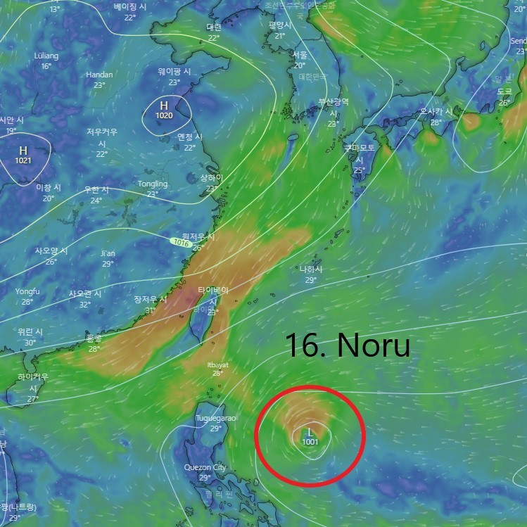 2022년 9월 23일 새벽, 15호 태풍 탈라스와 16호 태풍 노루가 발생되었습니다.