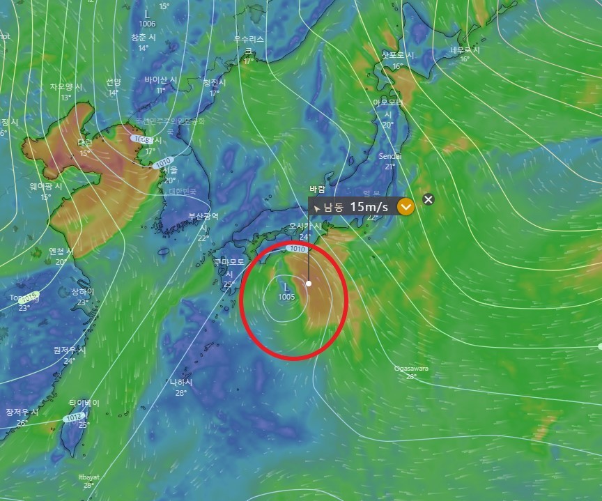 아마 이대로 일본에 상륙하여 소멸될 것으로 예상됩니다.