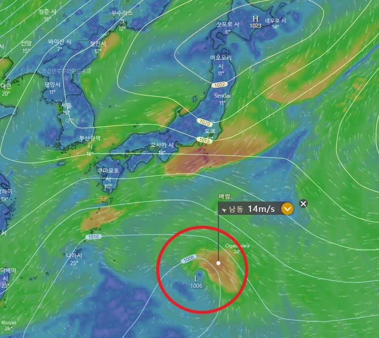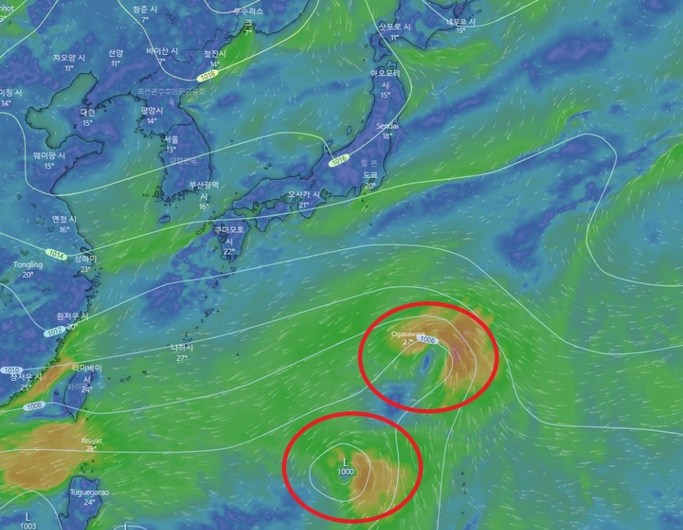이미 태풍 14호 난마돌은 소멸한 상태이며, 일본 남쪽에서 열대저기압이 발견되고 있습니다.